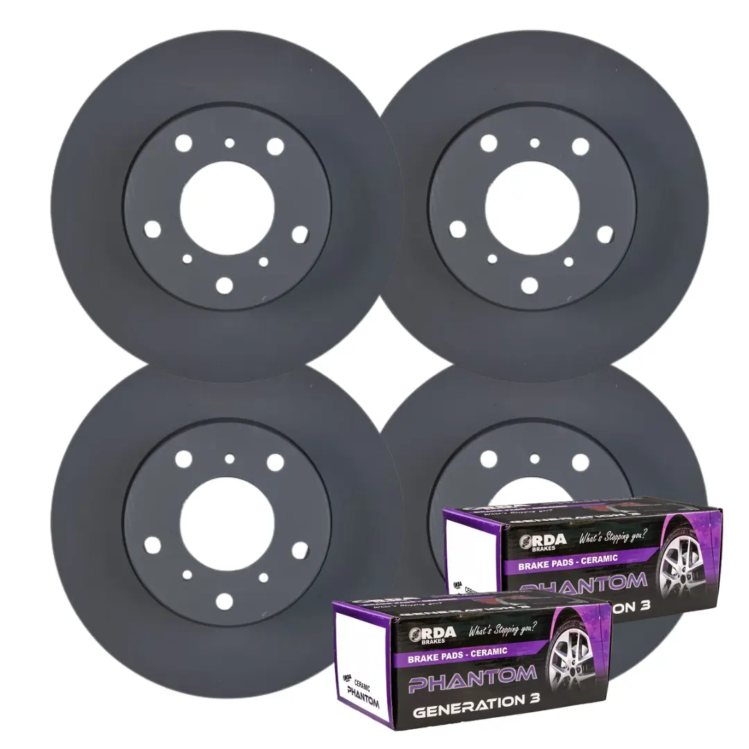 BRAND NEW - GENUINE RDA - FULL SET STANDARD FRONT & REAR DISC BRAKE ROTORS + RDA PHANTOM CERAMIC BRAKE PADS