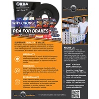 RDA Disc Brake Pads offer a highly sought after combination of value for money and excellent operating performance, the RDA brake Range is the Result of an Exhaustive Test Program Australia Wide Under Many Varied Operating Programs. These Disc Pads Deliver Improved Safety With Enhanced Performance for a Wide Range of Road Going Vehicles.