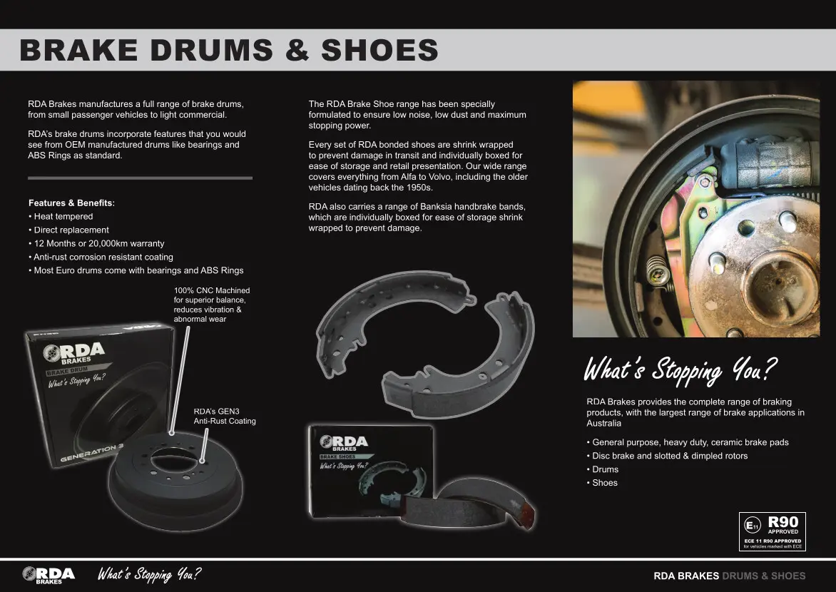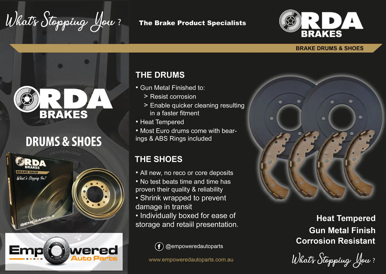 BRAND NEW - GENUINE RDA - REAR BRAKE DRUMS + RDA BRAKE SHOES